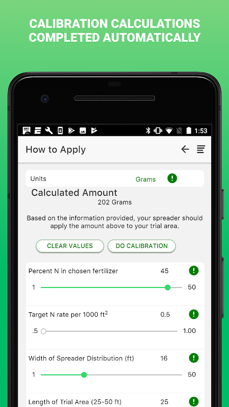 Built in calculators help you determine how much fertilizer will be needed to properly fertilize turfgrass areas, streamline calibration calculations, calculate the amount of nitrogen, phosphate and potash that will be applied to their area based on the fertilizer selected.