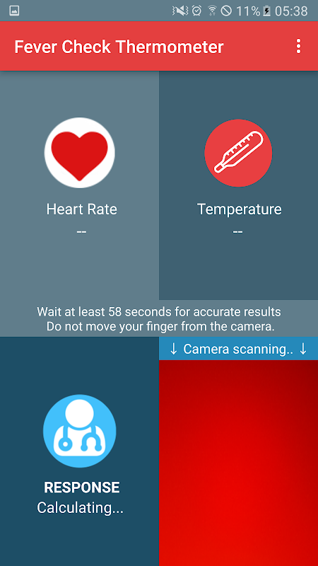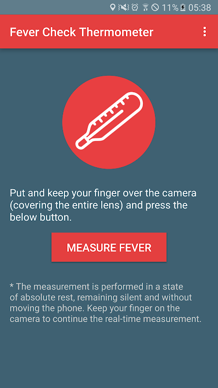 Do you think you have a fever and you don't have a thermometer? This app allows you to measure the fever, or at least have a rough indication, by using your phone's camera, it calculates the body temperature and the level of fever by analyzing the number of heartbeats, because the heart rate is influenced by fever.