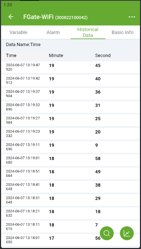 2. Visualize os dados operacionais do dispositivo em tempo real.