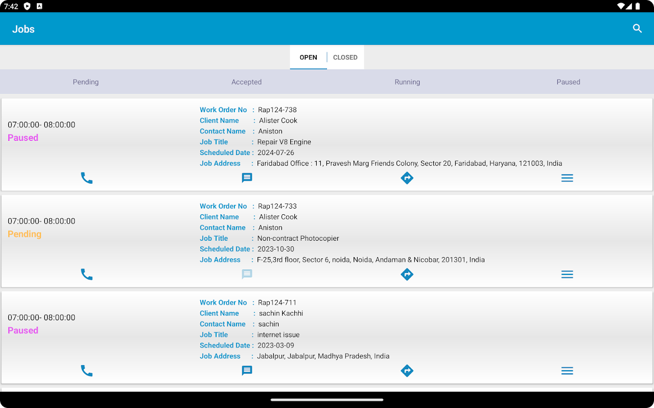 O aplicativo móvel destina-se a técnicos de serviço de campo para executar suas tarefas de serviço de campo com conjuntos de recursos poderosos.