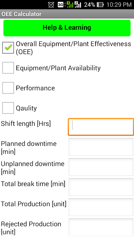 10) Calculadora OEE (sobre toda a eficácia do equipamento)
