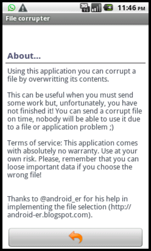 Terms of service: This application comes with absolutely no warranty. Use at your own risk. Please, remember that you can loose important data if you choose the wrong file!
