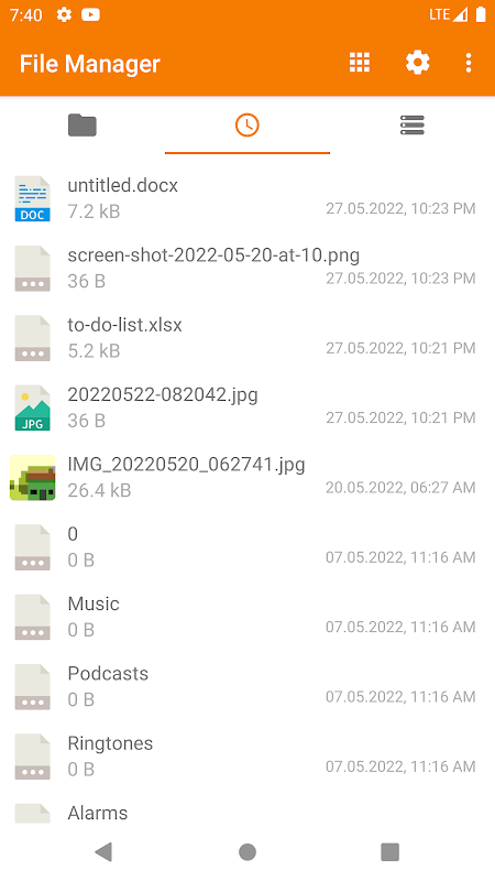 ★ Miniaturas: para arquivos de foto, vídeo e APK.