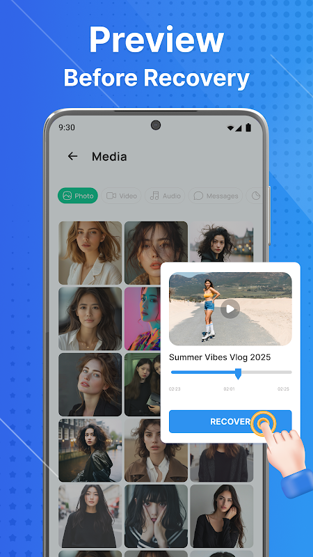 Perder fotos, vídeos ou arquivos importantes pode ser frustrante, especialmente quando eles contêm memórias ou informações valiosas. Mas não se preocupe, Recuperação de Arquivos - Recuperação de Fotos está aqui para ajudar! Com digitalização avançada e tecnologia de recuperação completa, esta recuperação de fotos excluídas facilita a recuperação de arquivos, fotos e vídeos excluídos. Sejam arquivos perdidos devido a exclusão acidental, formatação ou problemas com o telefone, esta poderosa ferramenta de recuperação de arquivos garante que você os recupere de forma rápida e segura.