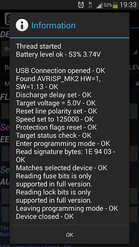 Filedyne AVR Demo is a tool for programming / upgrading AVR devices, using AVRISP mkII interface and USB OnTheGo(OTG) adapter.