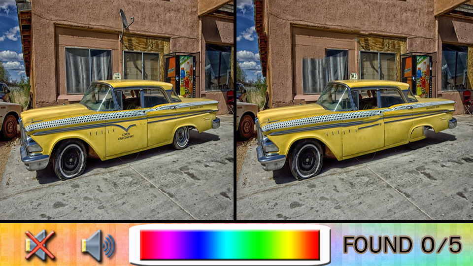 Este é um jogo de quebra-cabeça conhecido como ""Saloon"", ""Truck"", ou ""roda de caminhão"" onde você tem que entre duas imagens. Tente encontrá-los todos antes que o tempo se esgote, sem perder suas vidas. Se você ficar preso, há um sistema de dicas para ajudá-lo!