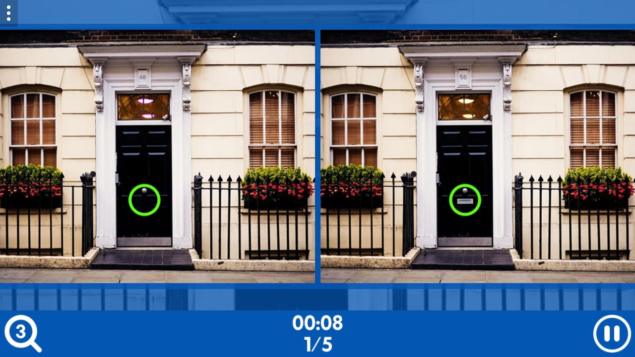 Try to find 5 differences between the two photos before the timer expires. With 100 levels, that means you must find 500 differences to complete this fun puzzle game. Study each of the photos and then tap on any of the differences.