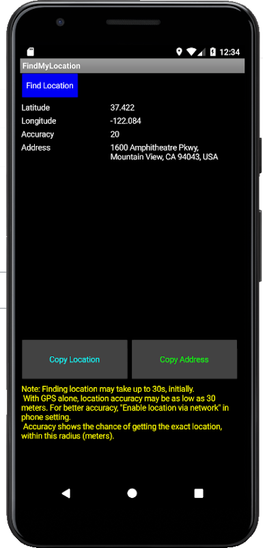 Este aplicativo é um aplicativo de localização que pode compartilhar a localização sem dados ao vivo