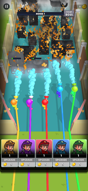 Aumente o nível dos bombeiros, utilize suas habilidades, apague as chamas, derrote o chefe e ganhe o jogo!