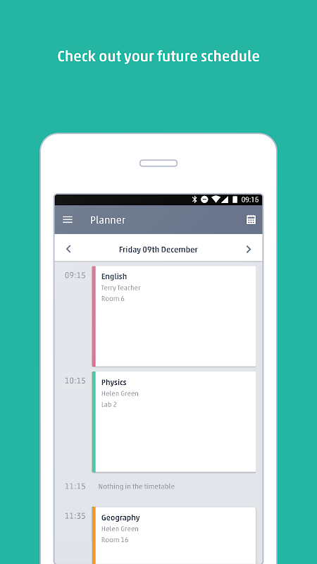 Simplesmente faça o login usando o código da escola (seu professor pode dar-lhe isso!) E ver o seu calendário completo, incluindo que o professor que você tem e onde cada lição é. Seus professores podem enviar-lhe a lição de casa ou outras tarefas, que serão classificados assim você estará sempre em cima do que você precisa fazer. Se quiser, você pode adicionar suas próprias tarefas e ligá-los a uma classe específica, criando um pessoal para fazer a lista.