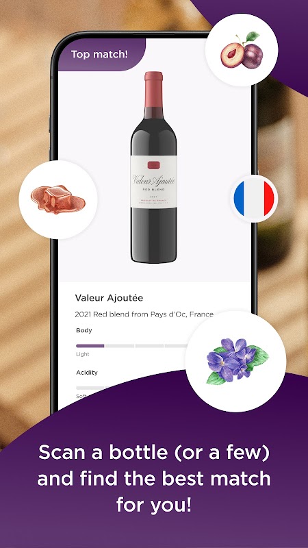 📸 Tire uma foto: digitalize rótulos de vinhos, cardápios de restaurantes ou corredores de supermercados para obter recomendações personalizadas em segundos.