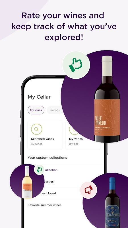📱 Construa sua adega digital: avalie e acompanhe cada garrafa que você experimentar em sua biblioteca pessoal de vinhos virtuais.