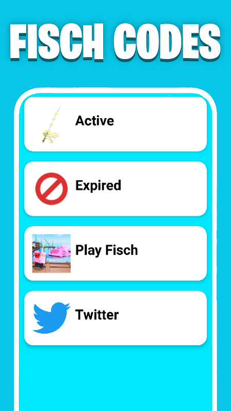 Este aplicativo irá ajudá-lo a ver os Códigos Fisch disponíveis e expirados do seu celular, com esses códigos você pode obter recompensas incríveis!