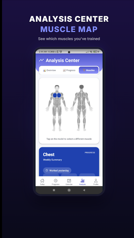 Registre seus treinos, ganhe XP e suba de nível. Acompanhe seus recordes pessoais com o mapa muscular. Funciona offline!