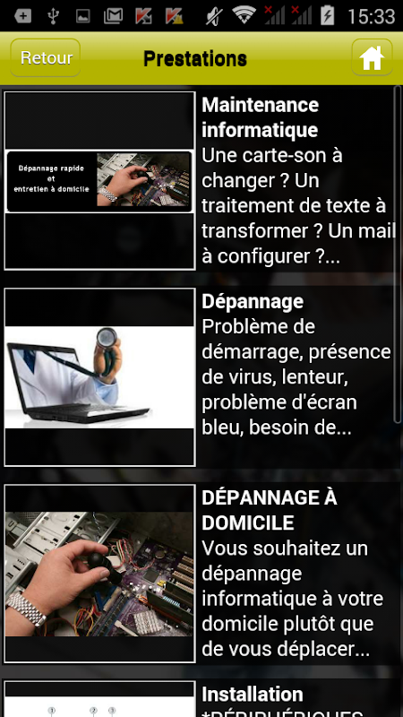 L'application FLASH INFORMATIQUE vous offre la possibilité de consulter toutes les infos utiles de la boutique (Tarifs, prestations, avis…) mais aussi de recevoir leurs dernières News ou Flyers sous forme de notifications Push.