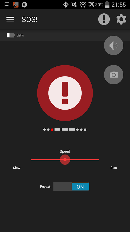 - Contém as funções estrobo, SOS e luz na tela