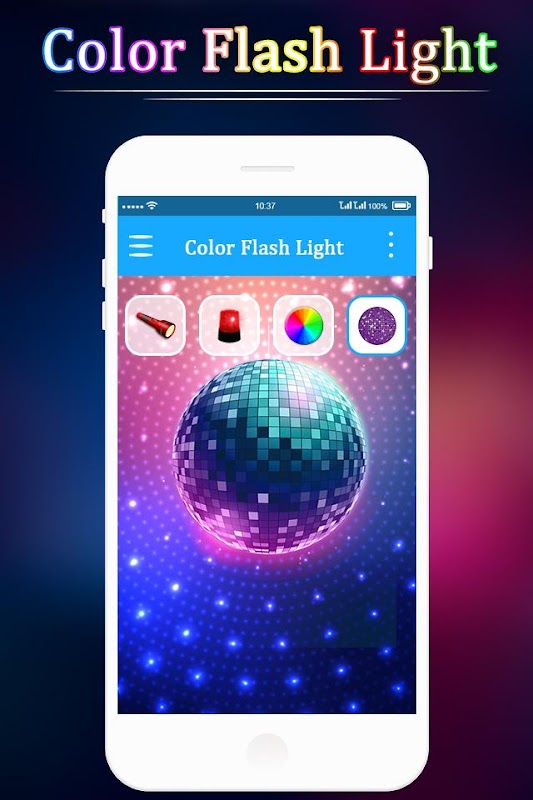 Turn your phone into a color flashlight, police light, disco light, candle and led banner.