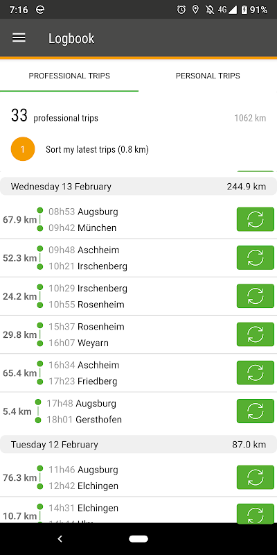 O aplicativo é executado em segundo plano e detecta automaticamente o início eo fim de um passeio. Como resultado, nenhuma manipulação com o smartphone deve ser feita durante a condução.
