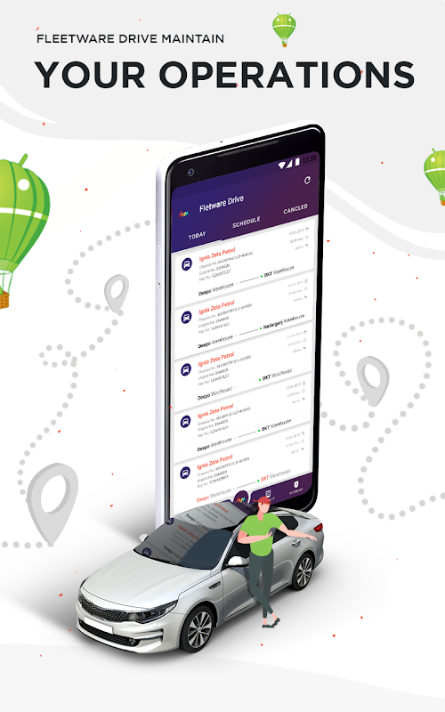 - Acompanhe a localização em tempo real de todos os seus carros e motoristas