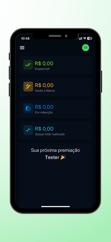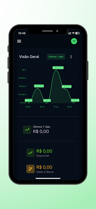 • Solicitações de saque: acompanhe e gerencie os valores disponíveis de forma simples