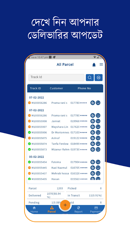 • Acompanhe o status de todos os pacotes