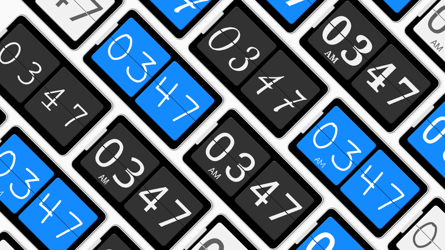 Relógio digital retrô com números fáceis de ler, animação flip muito suave e realista e efeitos sonoros.