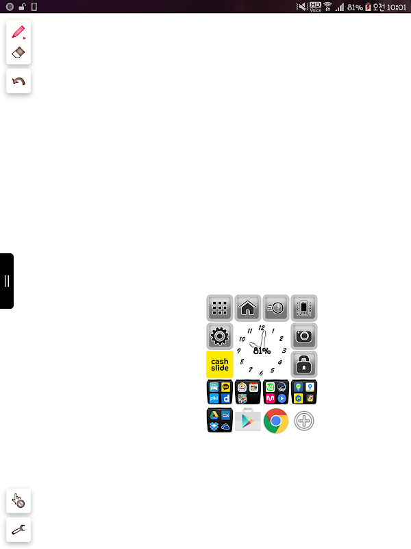 Default buttons - home/multitask/camera/flash/sound mode(ring&vibrate)/all apps/lock screen