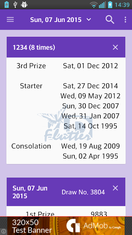 Este aplicativo não faz previsões / prever futuros números vencedores.