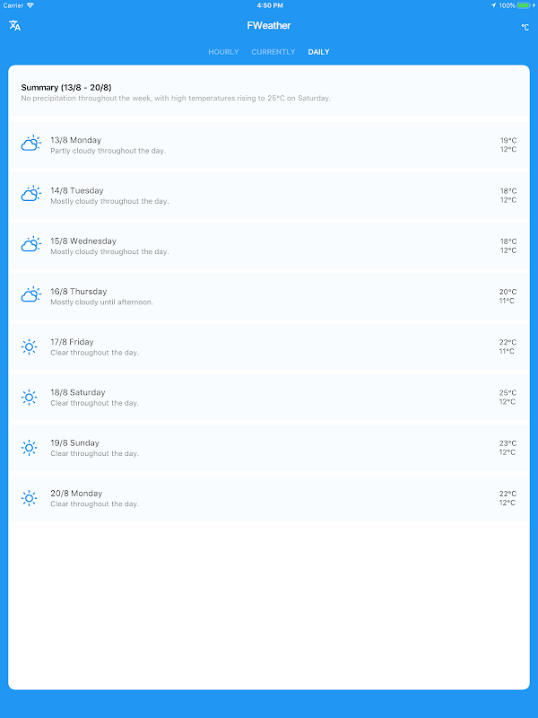 Flutter Weather App provides accurate and timely weather warnings and forecast for more than 20,000 locations in your country and 200,000 worldwide. Very complete and easy application working under a beautiful appearance.