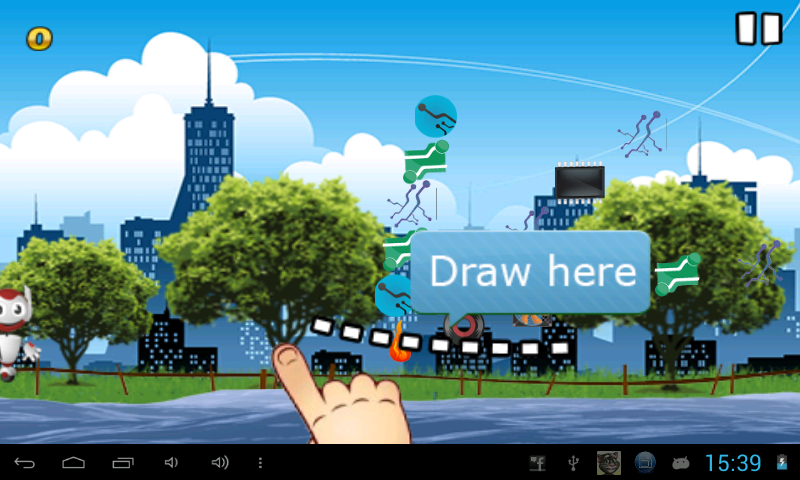 flying robot is one of the most interesting games , it gives you the ability to have fun by drawing trampolines for the robot to make him jump and collect the electronic objects as possible as you can to get the highest score.