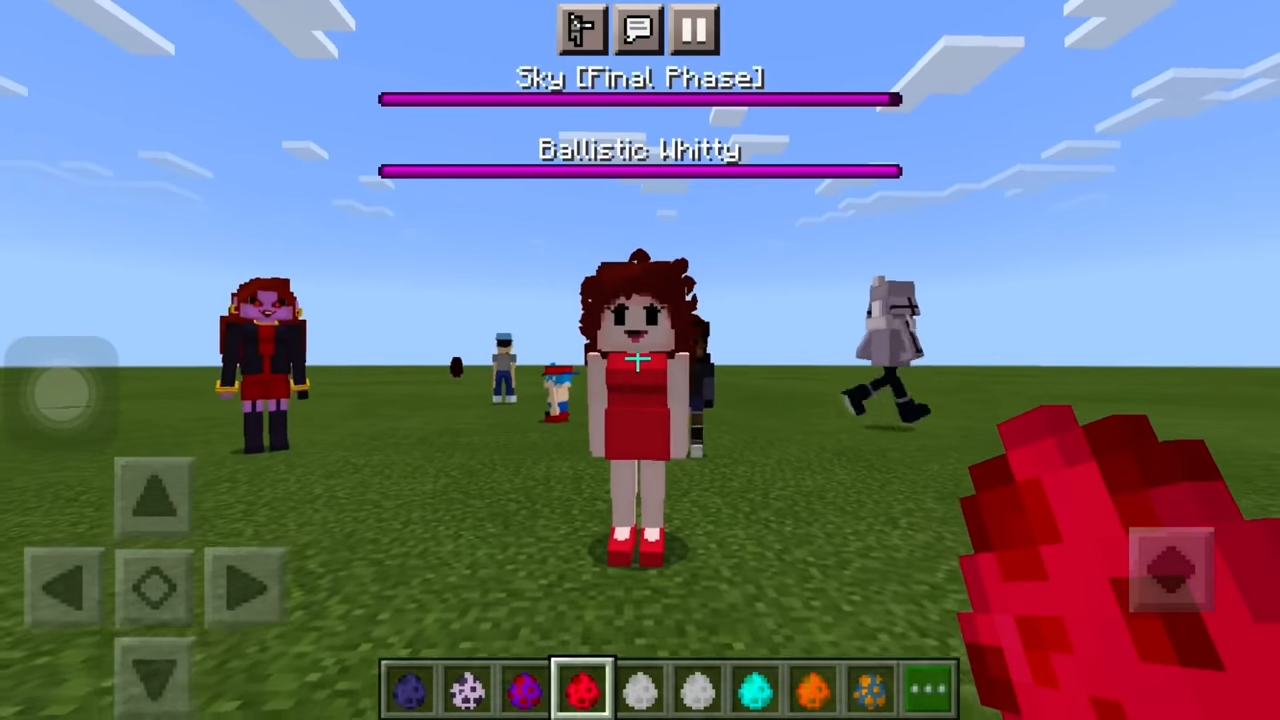 Muitas pessoas conhecem o jogo Friday Night Funkin, que foi lançado em outubro do ano passado. A jogabilidade, assim como o enredo, é bastante simples. Graças aos nossos mods, mobs e habilidades semelhantes aparecerão no Minecraft. As skins correspondentes para MCPE também serão adicionadas. Alguns dos mobs usam o canto para atacar, outros - eles pegam itens úteis, e o resto pode se tornar seus amigos.