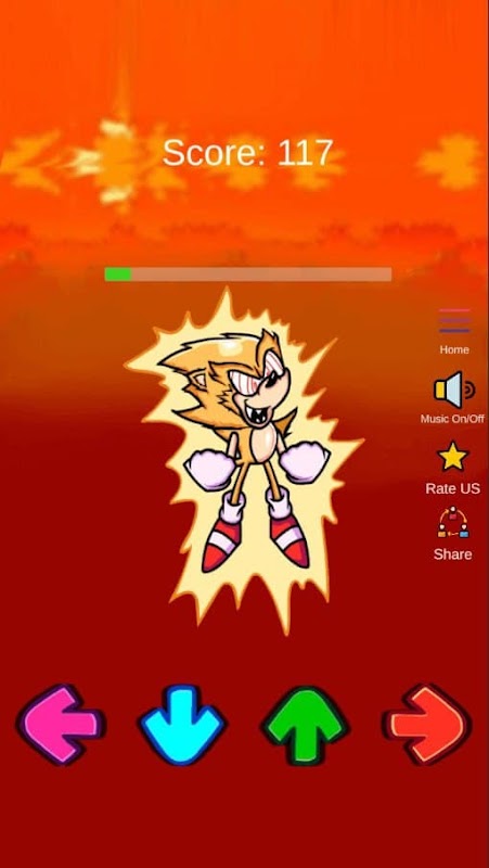 Como jogar FNF Sonik.Super Test? Nada complicado! Você precisa marcar tantos pontos quanto possível. Antes de iniciar o jogo, selecione o estado do herói e a música que você mais gosta e clique em play. Após iniciar o jogo, clique nas setas na tela do seu aparelho e ganhe pontos. Se você marcou 1500 pontos, este é um bom resultado do jogo. Se você conseguiu marcar mais de 2000 pontos - você é ótimo no FNF Sonik.Super Mod Test Character.