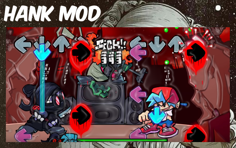 Graphically, FNF VS Accelerant Hank offers us an incredible animated background in each song, in which other Madness Combat characters appear as spectators replacing GF and sometimes next to her. We will have a new home screen and custom menu, and a new design of the arrows that can not be touched. The most remarkable are the graphic effects throughout the songs, in which we will see gunshots, smoke, and in general, an impressive atmosphere. Download and Enjoy