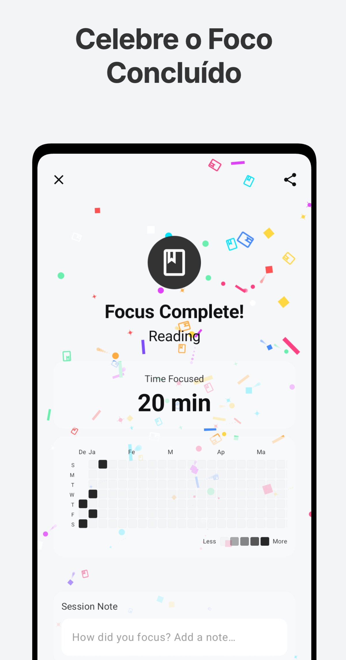 - Notas de Sessão: Anote ideias importantes ou tarefas a fazer para cada sessão de foco, para não esquecer e gerenciar tudo.
