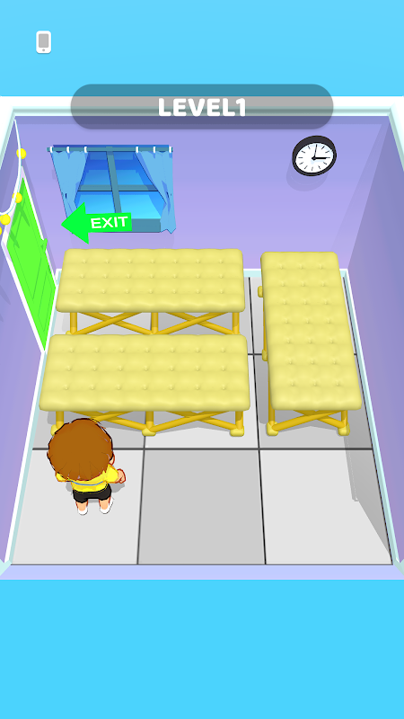 Folding and unfolding of the bed to open up a way by finger sliding.Each bed can be folded up or unfolded.Brainfully figure out which beds you need to fold to get out of the room.