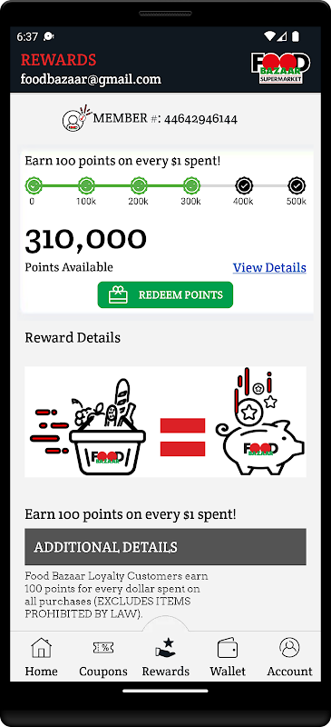 - Informações instantâneas sobre pontos de fidelidade para maximizar sua capacidade de fazer compras, economizar e aproveitar mais oportunidades de bônus.