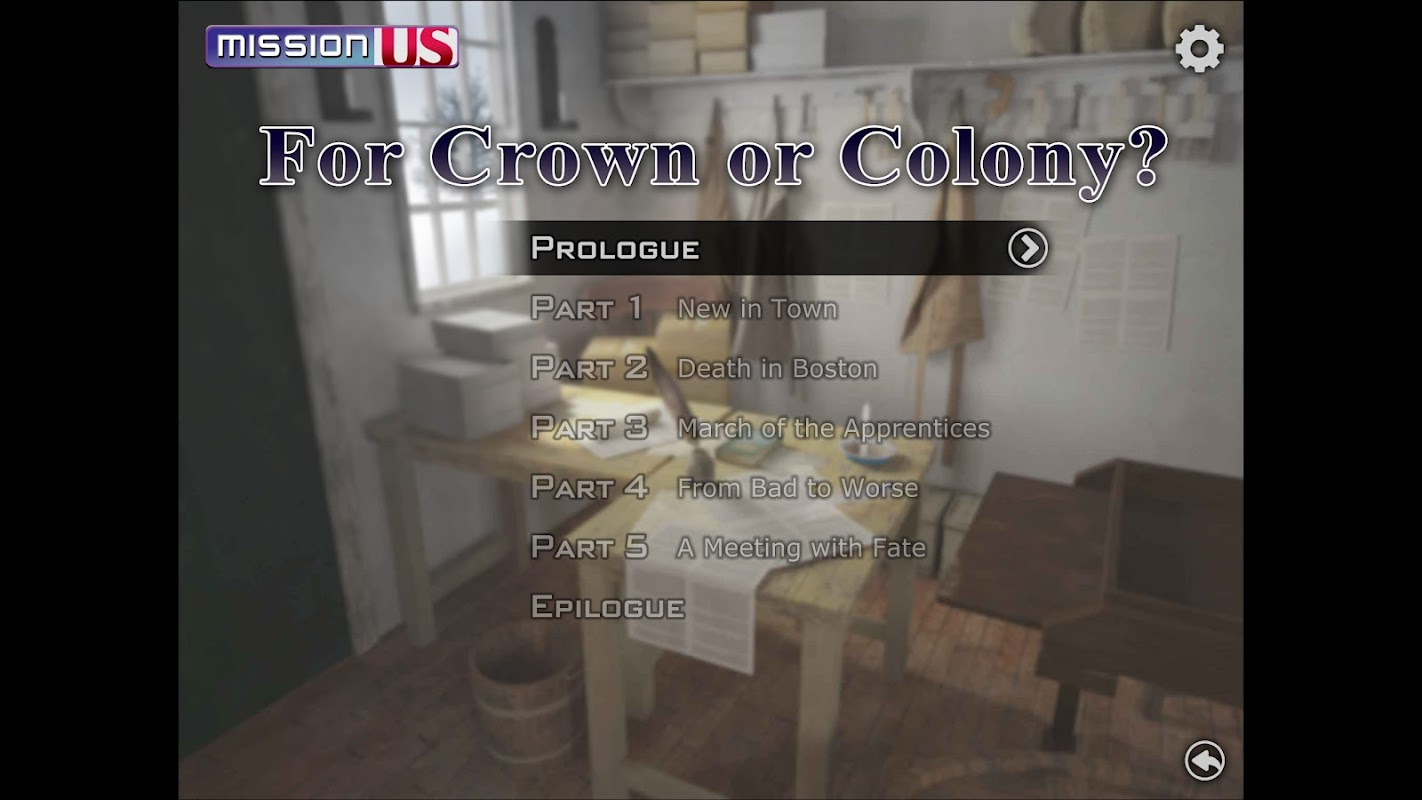 "Pela Coroa ou Colônia?" faz parte da aclamada série interativa MISSION US, que mergulha os jovens no drama da história americana. Vencedor do prêmio Games for Change de "Impacto Mais Significativo" e utilizado por mais de quatro milhões de estudantes até o momento, Mission US foi considerado "um dos jogos educativos online mais cativantes" e "um jogo poderoso que todas as crianças deveriam experimentar". Os professores observaram que os jogos são "uma ótima maneira de tornar a história real para os alunos do século XXI" e "o aprendizado virtual em sua melhor forma". Diversos estudos demonstram que o uso de Mission US aprimora o conhecimento e as habilidades históricas, leva a um maior envolvimento dos alunos e promove discussões mais ricas em sala de aula.
