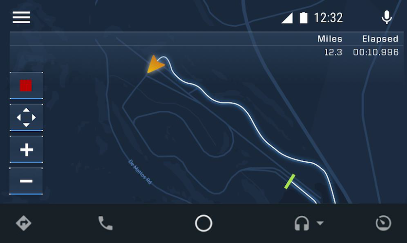 modo de pista - permite que o usuário selecione uma pista que eles criaram ou um que foi criado por um amigo. As faixas podem ser um simples ponto A para o ponto B, com início separada e linhas de acabamento, ou um circuito fechado com uma única linha de partida / acabamento combinado. modo Track fornece comparações tempo de volta em tempo real entre os resultados atuais e melhores resultados anteriores. Este modo apresenta um mapa com um carro fantasma, contador de voltas e temporizador.