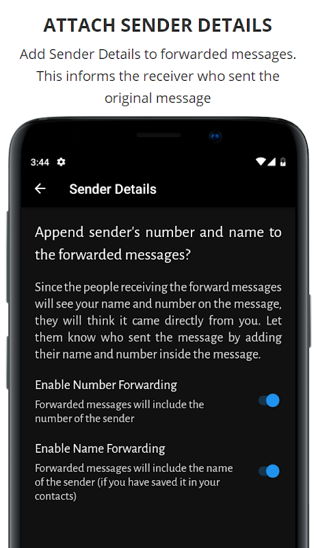 The app allows you to forward incoming SMS messages to any number in the world. You have the option to forward all the messages or some of them as per your needs. You can forward messages to multiple numbers also.