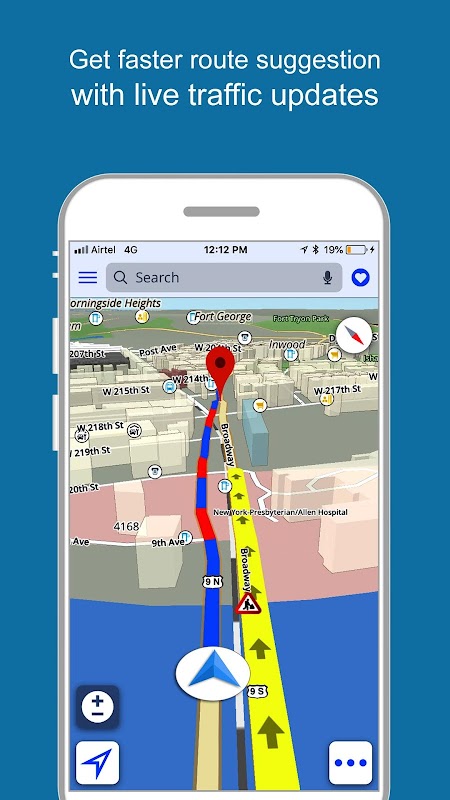 A opção Alertas de tráfego no aplicativo GPS, Mapas, Navegação e rotas gratuitos ajudará você a fornecer o status de tráfego ao vivo em seu local. Com base nas informações do Traffic, você pode facilmente planejar suas necessidades de viagem. O Live Traffic ajudará você a calcular o tempo de viagem entre sua localização atual e seu destino.