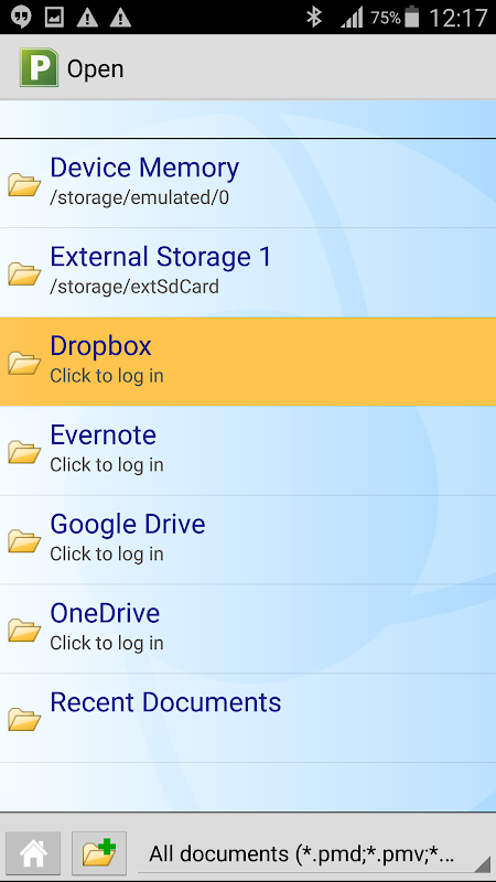 ► Acessar documentos que estão na Dropbox, Google Drive, Evernote e OneDrive, diretamente a partir do aplicativo