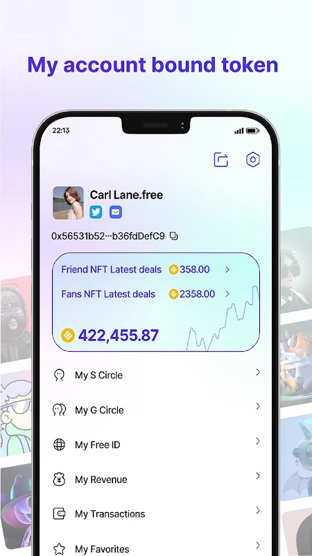 Com base no NFT (ERC721 agreement proof of interest, que vincula o relacionamento entre o criador e o titular do NFT), os dois terão uma comunidade comum, limitada a 150 amigos e 1000 fãs.