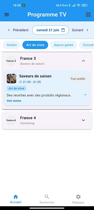 ℹ️ French TV é um guia informativo: os streamings não são integrados ao aplicativo. Eles só estão disponíveis quando os canais oficiais os oferecem.