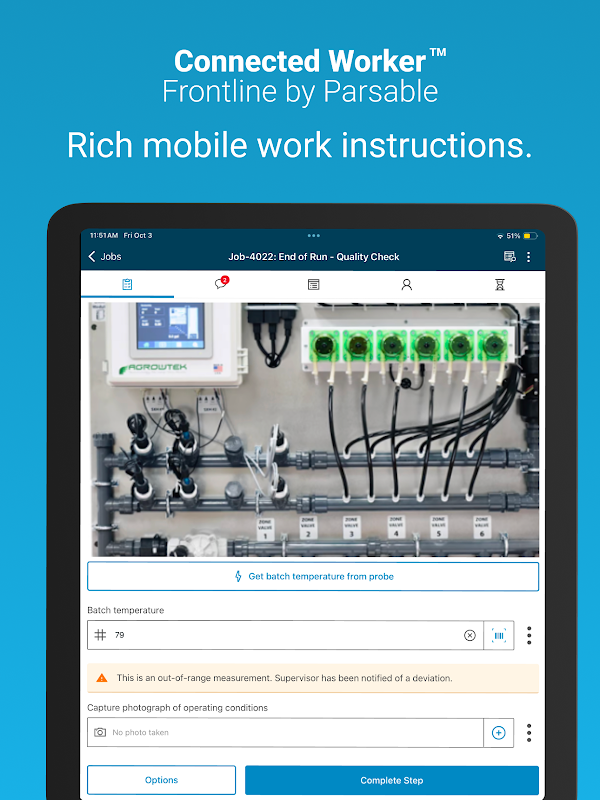 O Frontline da Parsable consiste em ferramentas digitais modernas que capacitam os trabalhadores da linha de frente, ao mesmo tempo que melhoram a produtividade, a segurança e a qualidade da fábrica.