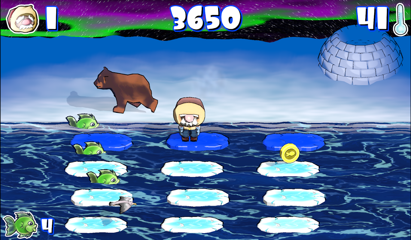Seu mundo está congelando. Você precisa construir seu abrigo o mais rápido possível. O tempo está se esgotando e você deve coletar blocos de gelo para terminar seu iglu a tempo, evitando um urso faminto que quer capturá-lo a qualquer custo. Salte no mar congelado, de bloco de gelo em bloco de gelo, devorando peixes deliciosos, esquivando-se de caranguejos, gaivotas e ostras que só querem levá-lo ao fundo do mar. Construa seu iglu aconchegante e quente e encontre sua casa quente e protetora