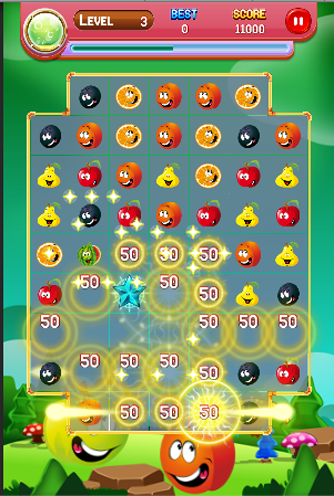 - Passe três ou mais mesmas frutas para marcar pontos.