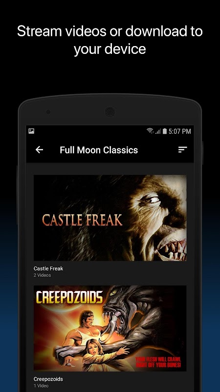 Full Moon Features é o seu ingresso virtual para um circo alucinante de horror, ficção científica e fantasia. É toda uma história secreta de cinema estranho na ponta dos seus dedos, 24 horas por dia! Navegue e transmita centenas de títulos, desde clássicos da Lua Cheia como a franquia PUPPET MASTER, CASTLE FREAK, EVIL BONG, SUBSPECIES, BLOOD DOLLS, TRAP TOURIST e TRANCERS a filmes Eurocult retirados da lendária gravadora Underground como ZOMBIE de Lucio Fulci e DEEP de Dario Argento RED, para retro erotica gemas da biblioteca Surrender Cinema como FEMALIEN e CALENDAR GIRLS e vintage down 'n' dirty esquisitices de exploração do catálogo ALGUÉM ESTRANHO VIDEO, além de novos filmes exclusivos e estreias mundiais e muito, muito mais! Full Moon Features está disponível por um preço de assinatura mensal ultra-baixo com novos títulos adicionados toda semana! Inscreva-se hoje e entre no mundo selvagem dos Recursos da Lua Cheia!
