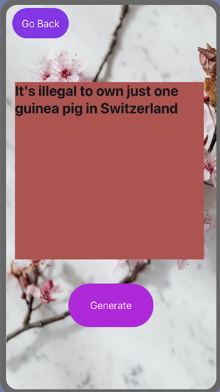 Este aplicativo oferece uma variedade de fatos que você talvez não conhecesse antes. Depois de abrir o APP, vá para a tela de geração, onde você pode encontrar fatos mais gerais que podem ser muito intrigantes para você. Aproveite o APP.....
