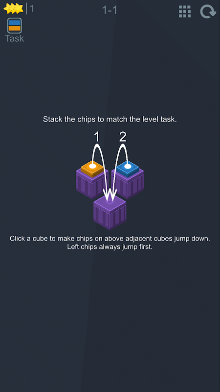 Stack the chips to match the level task.