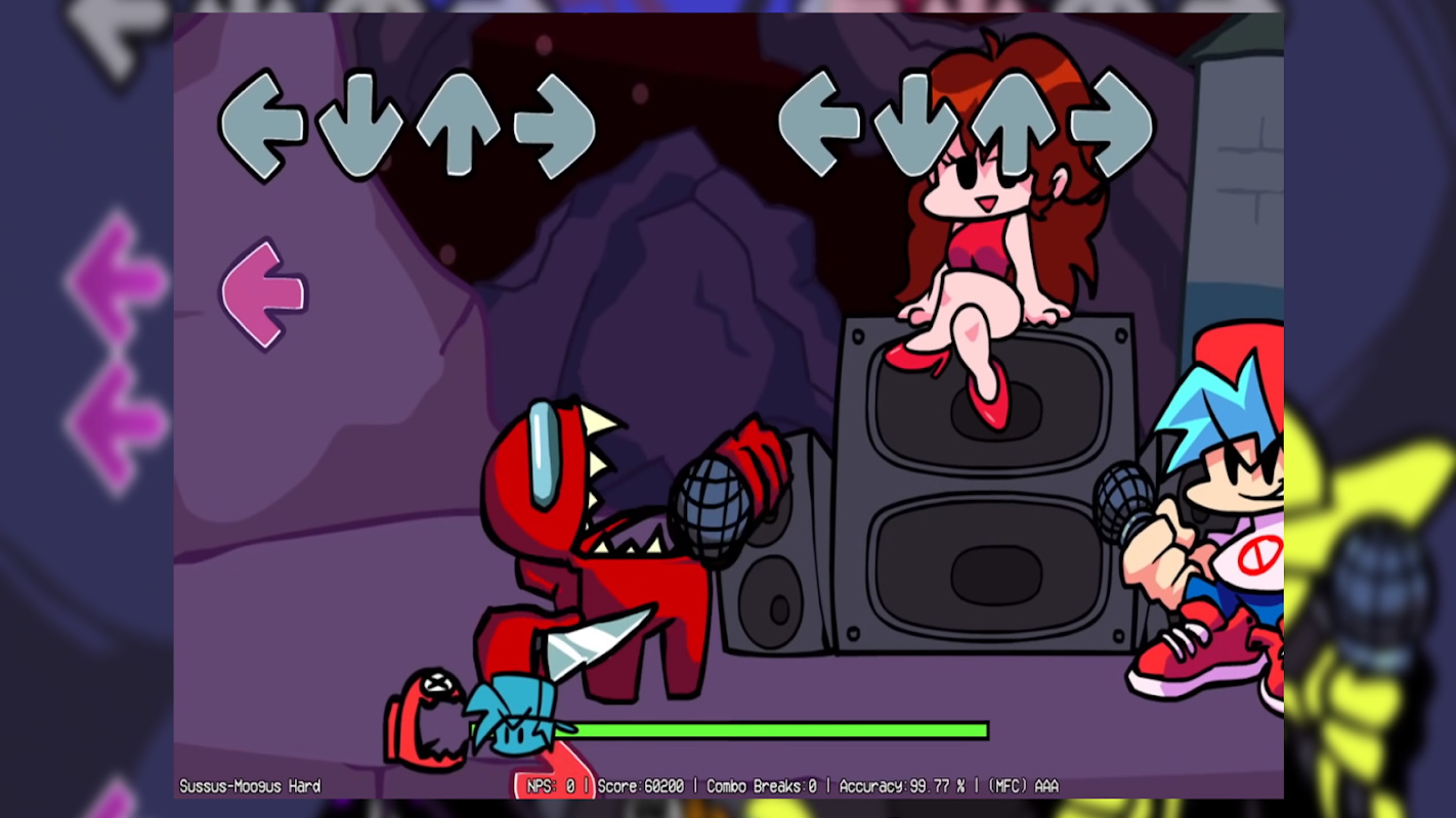 Funkin and Friday Night Impostor MOD contains dozens of music levels, where you need to play songs properly, game is divided for few weeks of singing, every week contains few levels, and those levels vary difficult, characters and of course song.